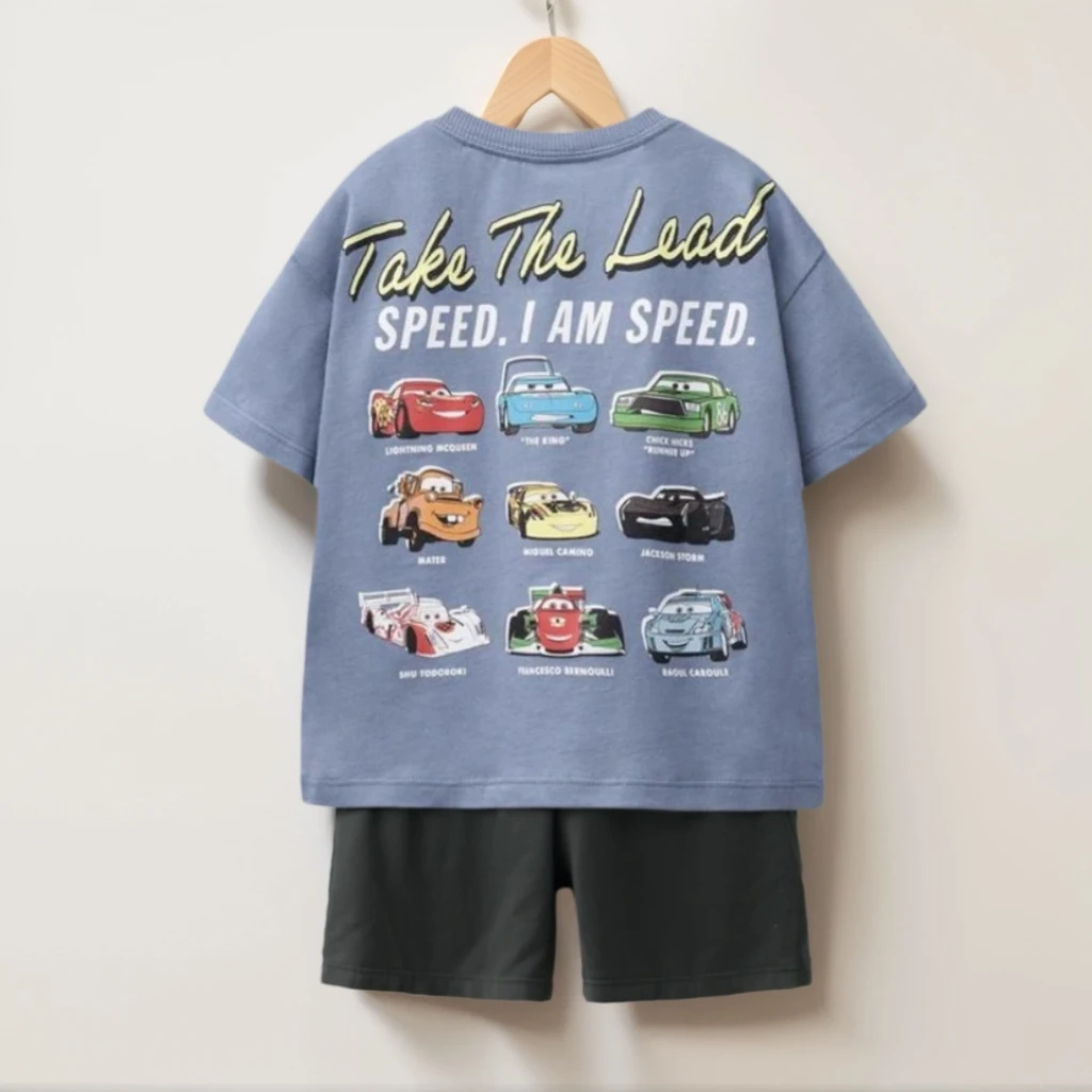 Summer Clothes Children Cartoon Car Print T-shirt+shorts Boys Child Round Neck Tees Loose Simple Shorts Trendy Costume Suit