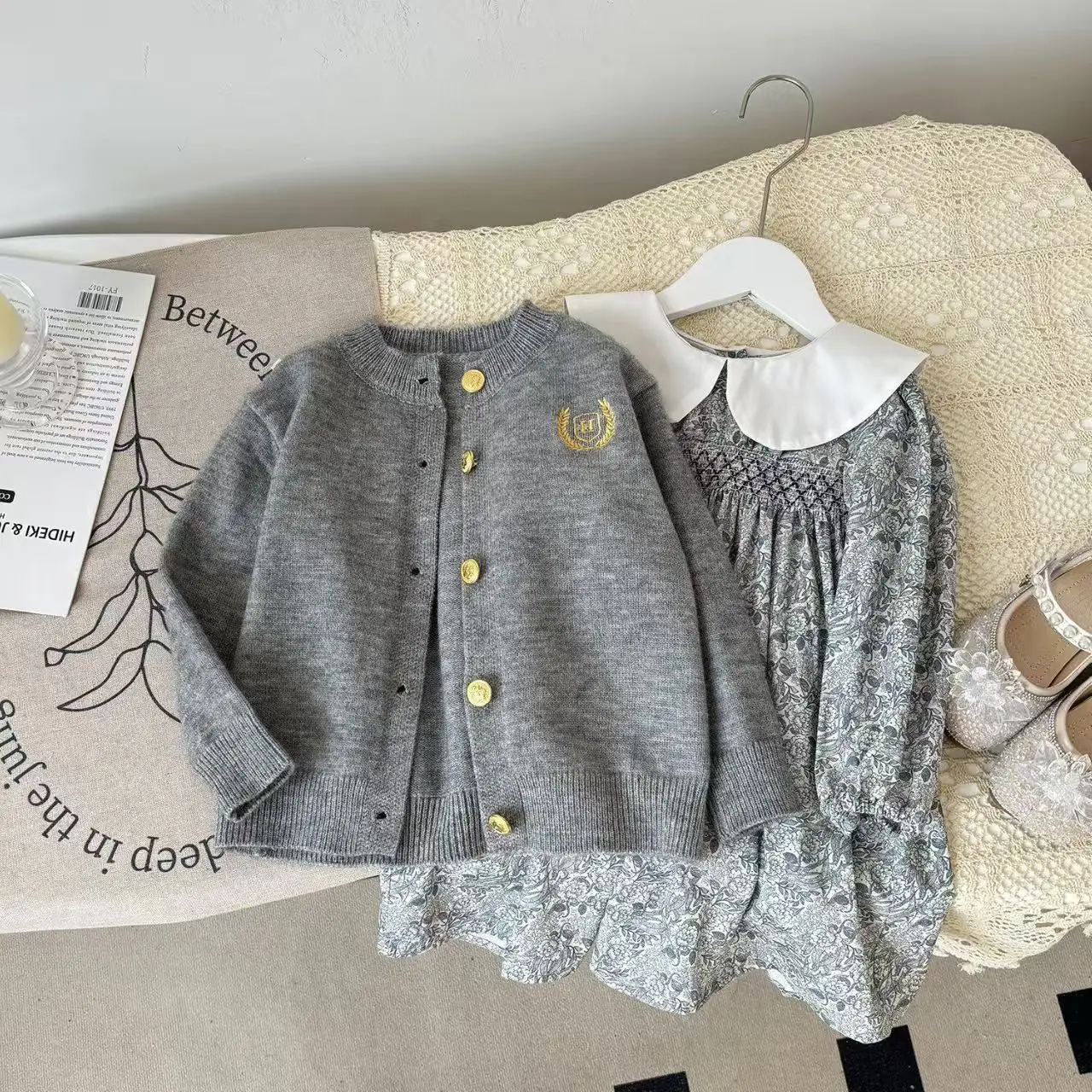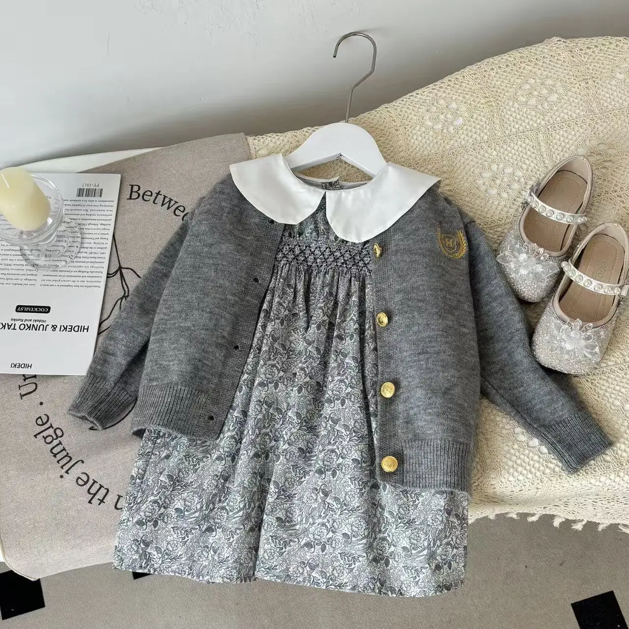 Fresh Girl Korean Two Piece Gray Knitted Sweater Set with Princess Skirt Set for Autumn 2025 90-140CM